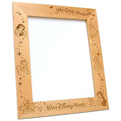 Surround your little princess with her favorite royals. Snow White, Cinderella, Aurora, Ariel, Jasmine and Belle are featured on this wooden Disney Princess Frame by Arribas. Personalize it to create a unique frame for that happily ever after photograph.