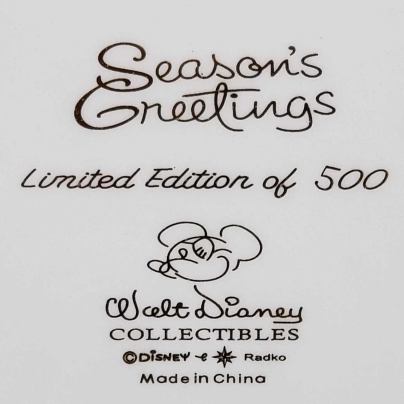 A Disney Christopher Radko Mickey and Friends Christmas Tree Cookie Jar limited edition of only 500 made. Hand painted with 24K gold accents. Mickey and his friends decorate a beautiful Christmas tree while Pluto relaxes on some presents. Minnie and Mickey stand by the ladder while Donald tops the tree with a 24K gold painted star. Goofy inside the tree whimsically pushes through the branches. Tree is covered with ornaments, many mouse shaped. This Disney Christopher Radko Mickey and Friends Christmas Tree Cookie Jar would be the pinnacle of any cookie jar collection or gift for someone who loves Disney.