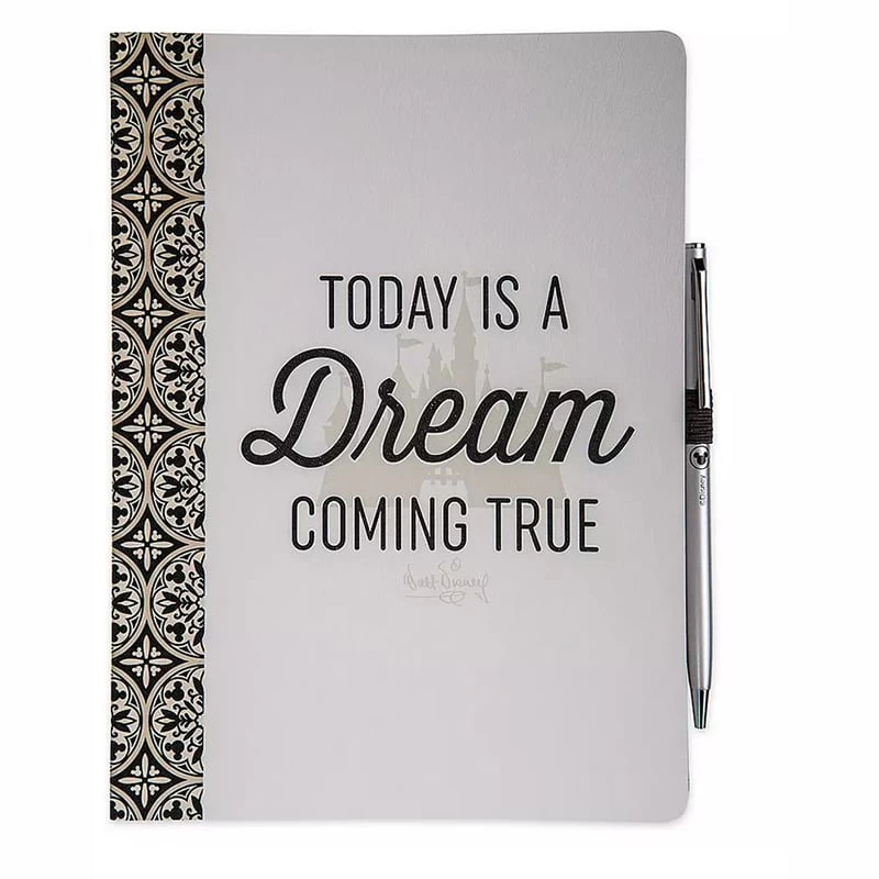 As the cover of this journal declares ”Today is a dream coming true” so you will want to write all about it. Part of the Disney Homestead Collection, this journal features the Fantasyland Castle on the front, Mickey on the corners of the lined pages, and a stylish pen.