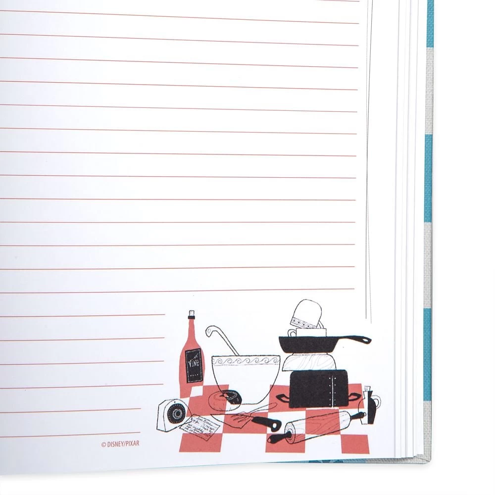 If Remy had a real-life journal, this is just what it would look like. Hardbound cookbook styling–as seen in Ratatouille–features chef Auguste Gusteau on front, with ruled pages and tasteful illustrations, plus ”rattail” bookmark.