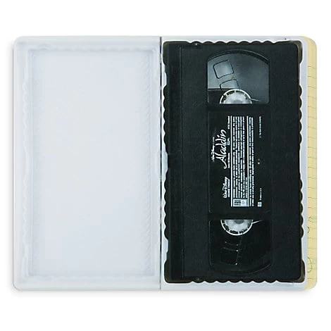 - Softcover reproduces VHS clamshell case art for Disney’s Aladdin