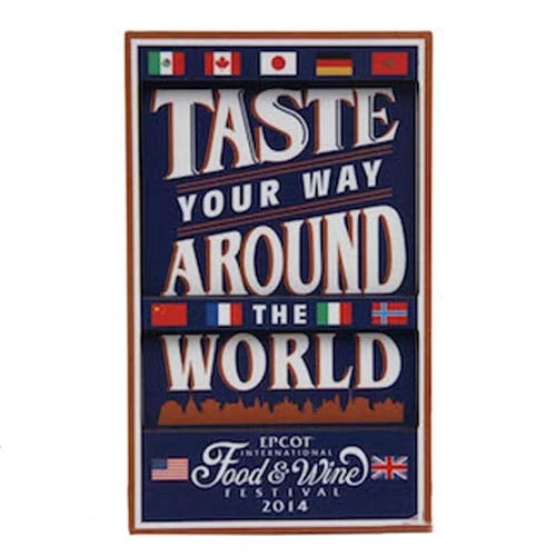 Taste Your Way Around the World in celebration of the 2014 Epcot International Food and Wine Festival. Commemorate your trip with this magnet featuring the 2014 Festival logo.