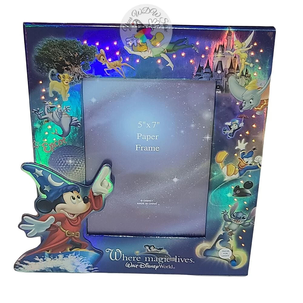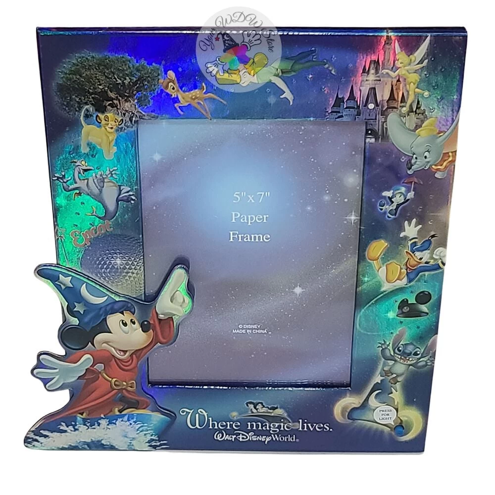 Sorcerer Mickey is surrounded by a galaxy of Disney stars in this spellbinding print. Dumbo, Bambi, Tinker Bell are among the characters pictured alongside Walt Disney World icons in this wondrous celebration of how ”Magic Lives.”