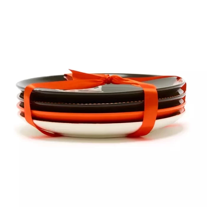 - Set includes four plates