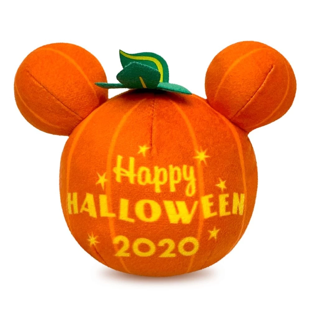 Mickey’s got a soft spot for spooky fun and is all dressed up as a jack-o’-lantern for this fuzzy plush pumpkin with light-up features and ”Happy Halloween” greeting.
