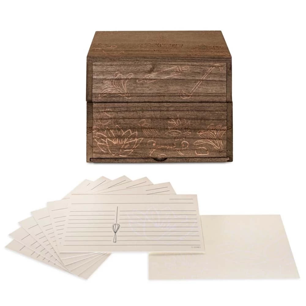 - Includes wooden box, 25 blank recipe cards, and five divider cards