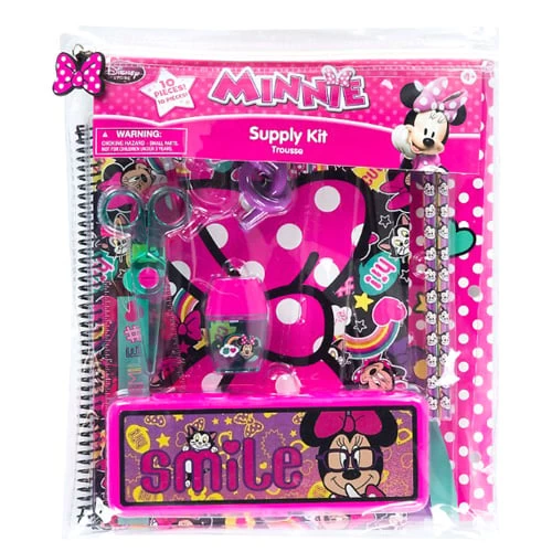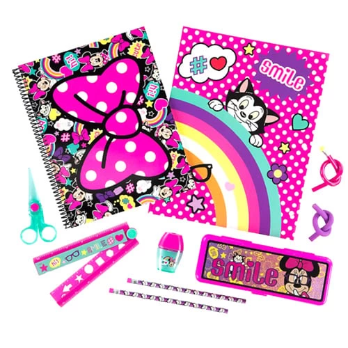 Our Minnie Mouse Stationery Supply Kit offers a sweet assortment of creative and school essentials to inspire every imagination, with notebook, pencils, accessories and a cute case.