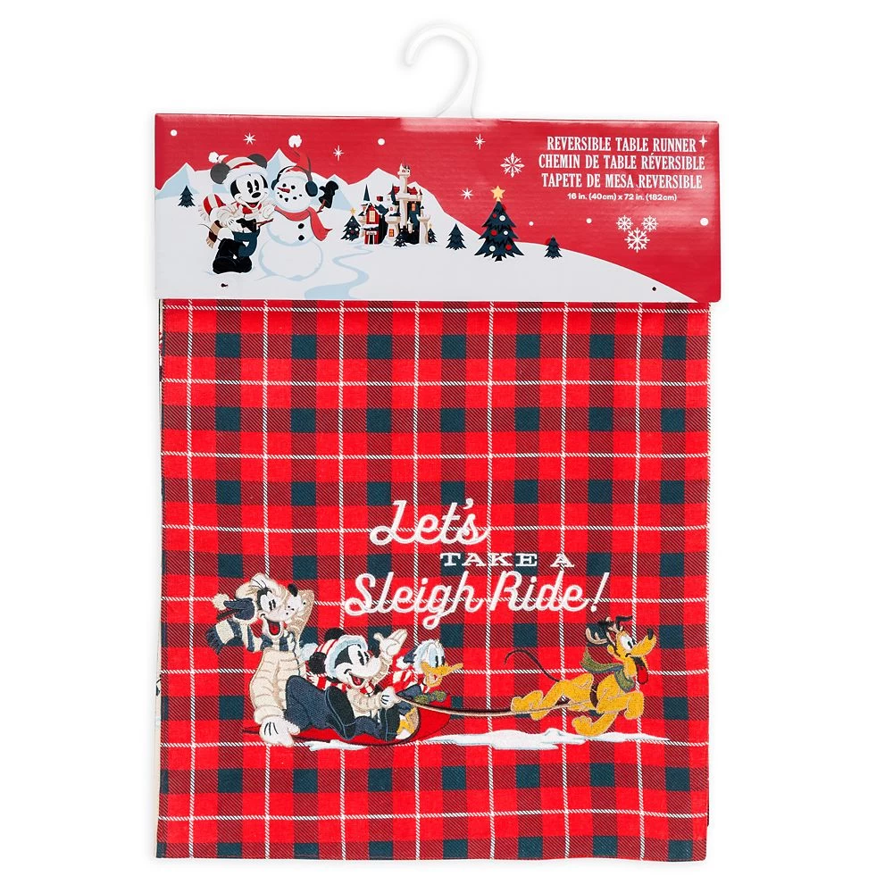 Outfit your table in festive fashion with this Mickey Mouse and Friends Reversible Holiday Table Runner. Featuring colorful character artwork on one side and red and black plaid with a Mickey and friends appliqué on the other side, this table runner is filled with seasonal style!