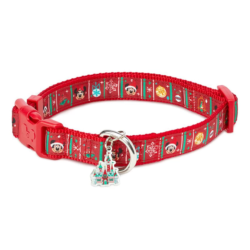 Get your four-legged friend dressed in their holiday best. Available in different sizes, this sturdy Mickey and Minnie Mouse dog collar features a festive Disney Parks-inspired design and metal charm of a Fantasyland Castle.