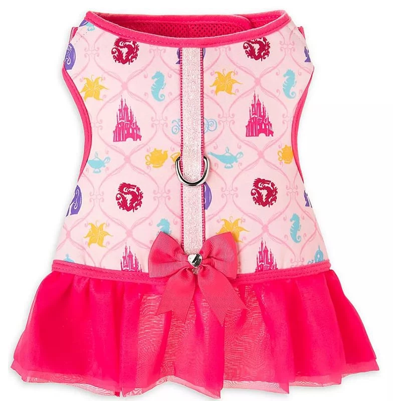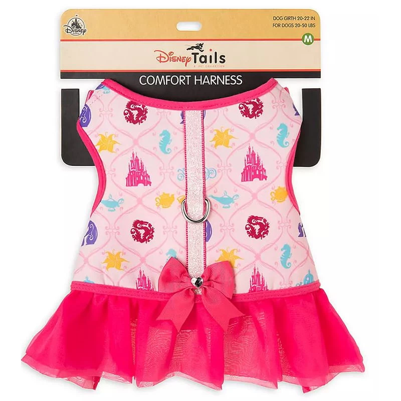 Treat your furry friend like royalty when you wrap them in the regal style of this Disney Princess Dog Comfort Harness. Available in different sizes, the fully adjustable, stretchy design, includes a tutu skirt, bow and heart-shaped gem.