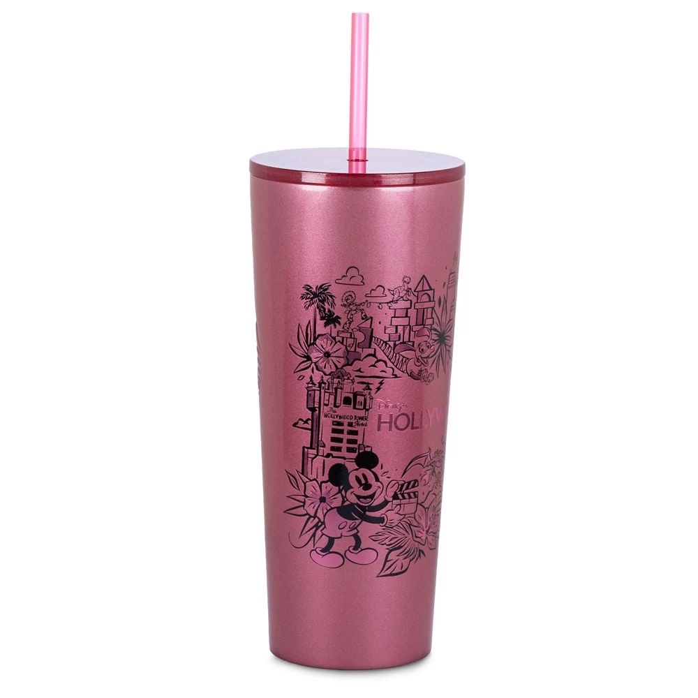 Lights! Camera! Action! Drink in the cinematic excitement of your trips to Disney’s Hollywood Studios with this commemorative Starbucks® tumbler and straw. The pink pearlized stainless steel body features Mickey among the park’s many popular attractions and landmarks on one side, while the other side features the Starbucks® logo. With its translucent lid and reusable straw, it’s perfect for your next park day.