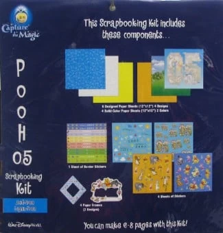 Cherish all the memories of a Disney World vacation with this easy-to-use scrapbooking kit featuring Disney’s Winnie the Pooh and friends. Colorful stickers and frames turn your photos into a unique, Disney keepsake. This colorful kit includes Pooh, Tigger, Piglet, Eeyore, Rabbit, Owl, and Kanga with Roo for documenting all-new adventures that only you can imagine!